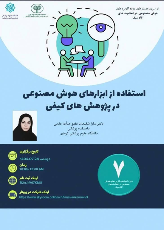 وبینار آموزشی استفاده از ابزارهای هوش مصنوعی در پژوهش های کیفی ( از سری وبینار های دوره کاربردهای هوش مصنوعی در فعالیت های آکادمیک )